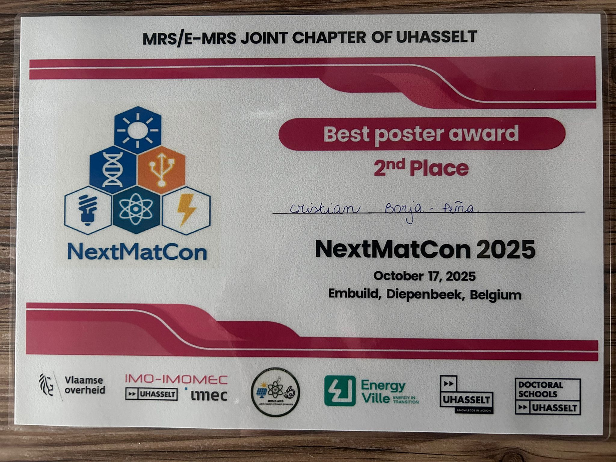 The conference took place on 17 October in Belgium, organized by the MRS-E/MRS Joint Chapter of Hasselt University, and brought together cutting-edge research across the materials science community.