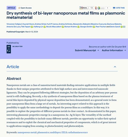 Dry synthesis of bi-layer nanoporous metal films as plasmonic metamaterial